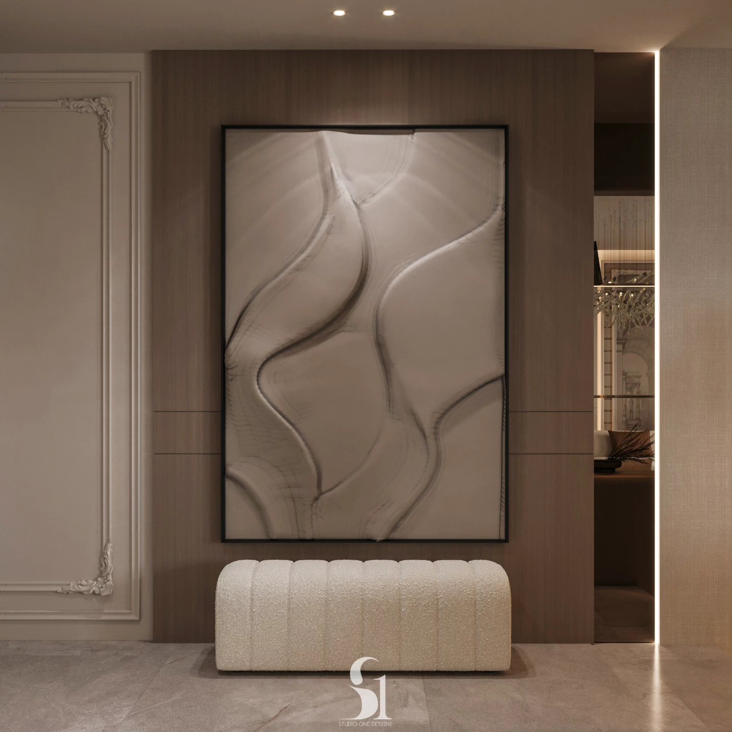 Habillage décoratif pour tête de lit, mur TV ou espaces de réception.